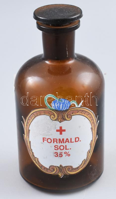 Patikai üveg, Formald. Sol. 35%, kis kopással, m:14 cm