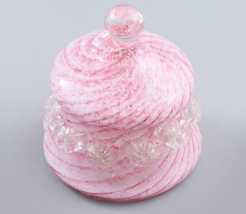 Rózsaszín csavart bonbonniere. Kézzel készült, anyagában színezett, húzott, sérüléssel d: 11 cm