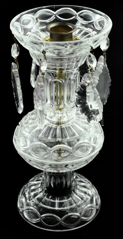 Üveg gyertyatartó, függelékekkel, bronz szerelvénnyel, kis kopással, j...
