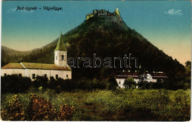 Vágváralja, Vág-Podhragy, Povazské Podhradie (Vágbeszterce, Povazská Bystrica); Podrágyvár, templom, kastély, Vágvölgy. Andor kiadása / castle, church in Váh Valley / Povazie, Povazsky hrad (fl)