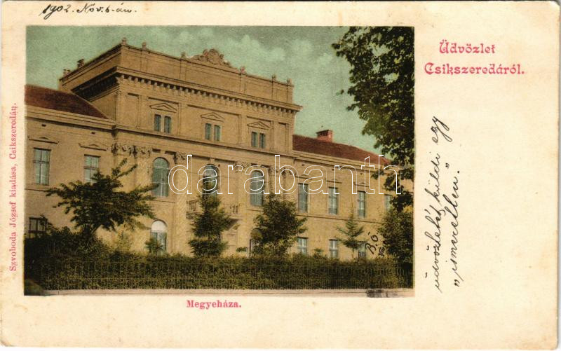 https://www.darabanth.com/en/456-Online-auction/456.0/Postcards/Transylvania~1500005/1902-Csikszereda-Miercurea-Ciuc-Megyehaza-Szvoboda-Jozsef-kiadasa-county-hall-EK~II3046680