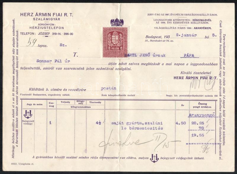 https://www.darabanth.com/en/457-Online-auction/457.0/Art-and-other-collectibles/Advertisement~2000359/1932-Herz-Armin-Fiai-RT-fejleces-szamla~II3053218