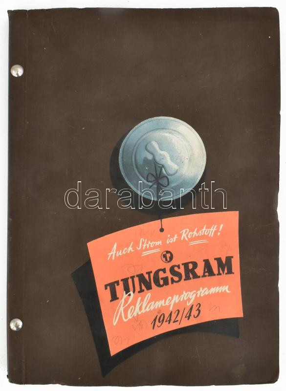 1942-43 A Tungsram reklámterve egyedi 120 oldalas nyomtatvány, benne a... https://www.darabanth.com/en/457-Online-auction/457.0/Art-and-other-collectibles/Advertisement~2000359/1942-43-A-Tungsram-reklamterve-egyedi-120-oldalas-nyomtatvany-benne-a-ceg-osszes-kiadott-vagy-~II3012866