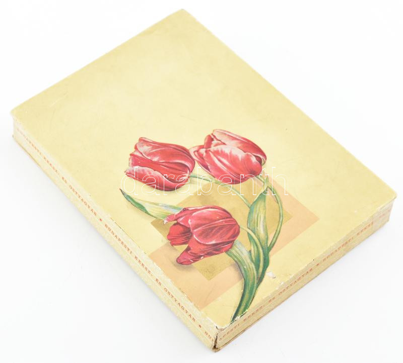 Budapesti Keksz- és Ostyagyár bonbonos doboza, kopott, javított, 14x20...