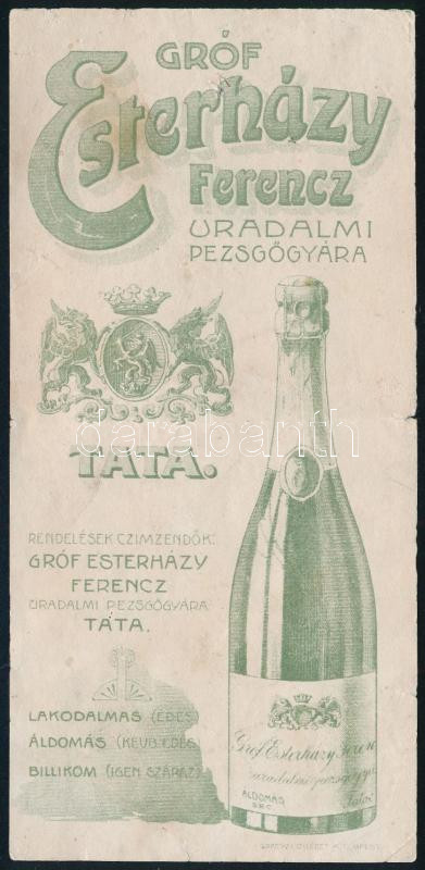 https://www.darabanth.com/en/457-Online-auction/457.0/Art-and-other-collectibles/Advertisement~2000359/Grof-Esterhazy-Ferenc-uradalmi-pezsgogyara-Tata-szamolocedula-hajtott-kis-szakadassal~II3055381
