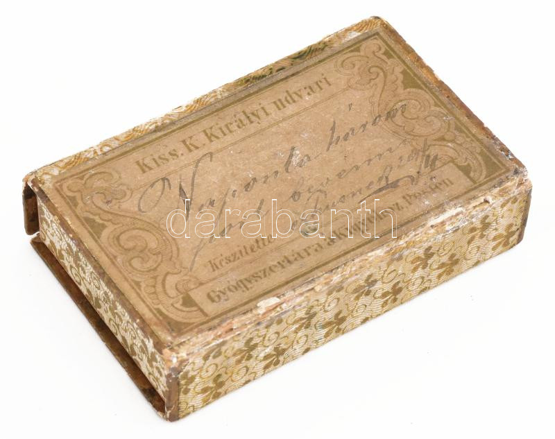 Kiss K. Királyi Udvari Gyógyszertára a Kígyóhoz Pesten papírdoboz, 4×6...