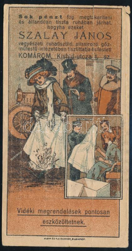 https://www.darabanth.com/en/457-Online-auction/457.0/Art-and-other-collectibles/Advertisement~2000359/cca-1910-Szalay-Janos-ruhatisztito-gozmoso-Komarom-litho-szamolocedula-szakadassal~II3060001