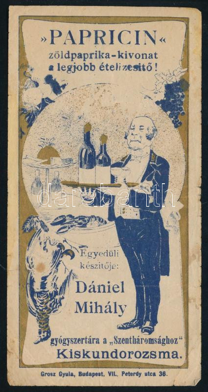 cca 1920 Papricin ételízesítő kivonat, Dániel Mihály gyógyszertára a S...