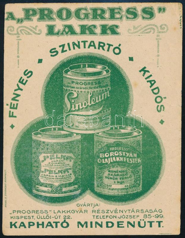 cca 1920 Progress Lakkgyár termékeinek reklámlapja