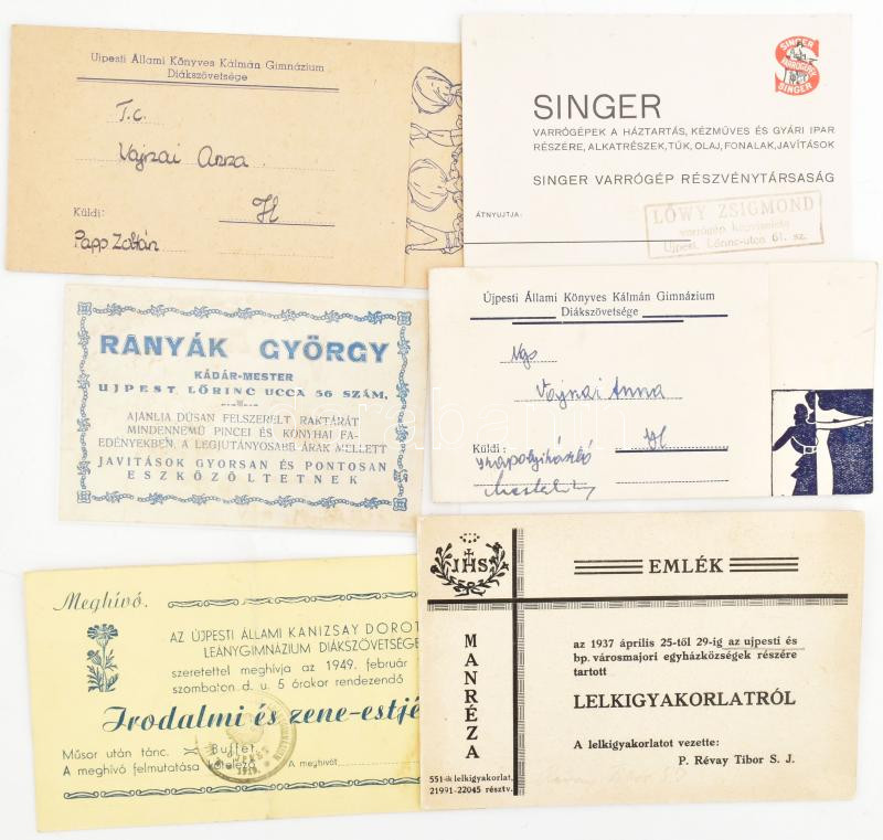 cca 1930-1940 6 db Újpesti cégek, mesterek szórólapjai, iskolai meghívók
