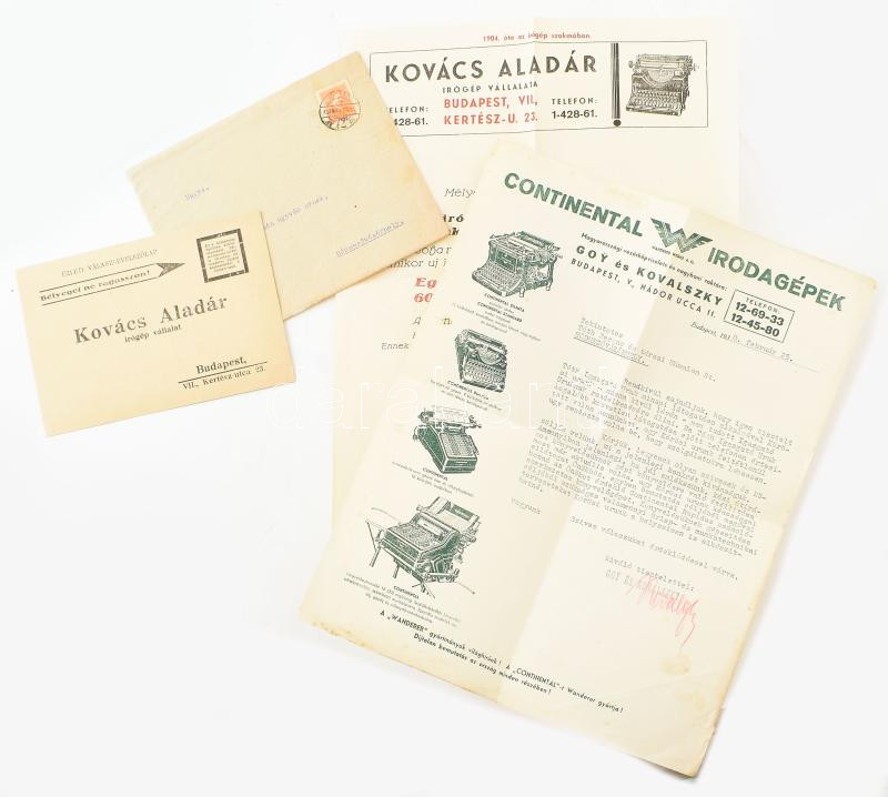 cca 1940 2 db írógép reklám nyomtatvány, borítékokkal