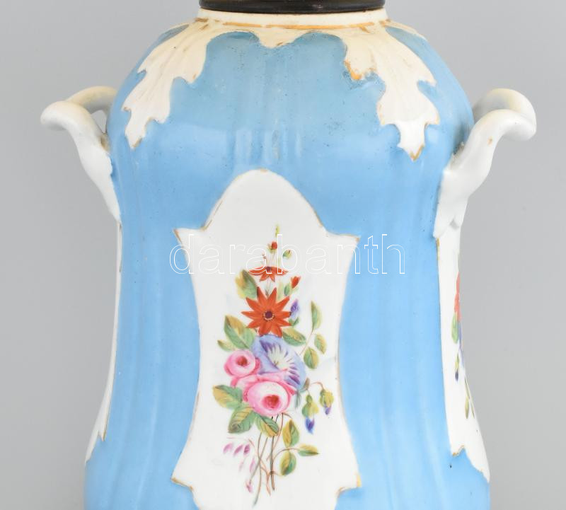 Antik Porcelán lámpa. Antik kék-fehér színű,2 füles,kartusokban virágm...