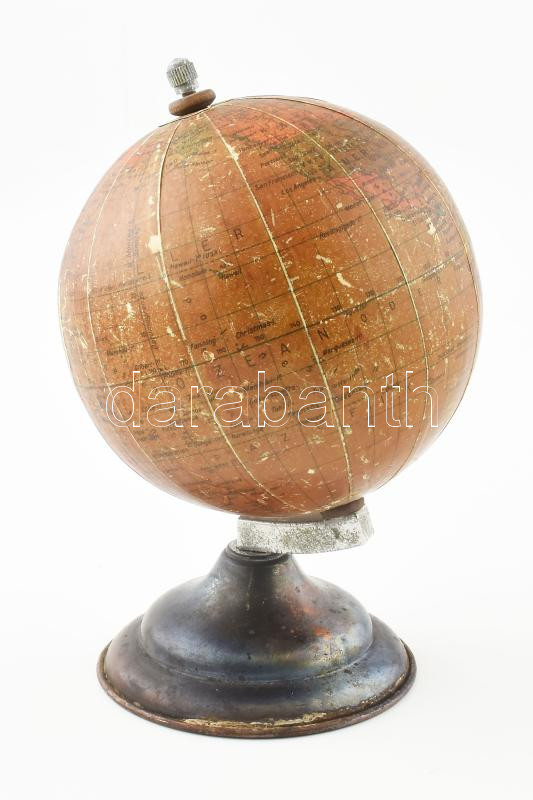 Antik földgömb. Ezüstözött fém, karton, kopással, m: 18,5 cm