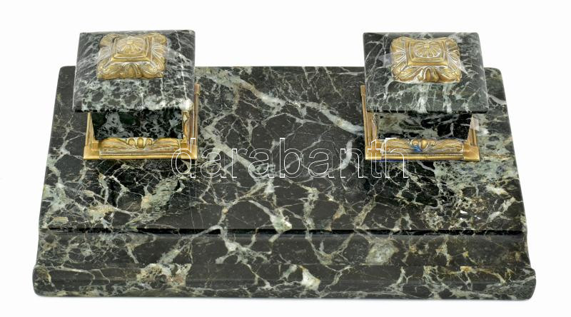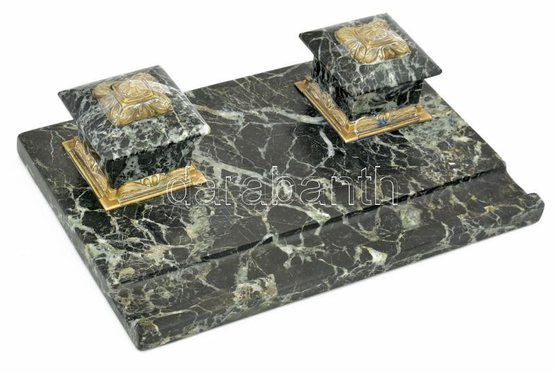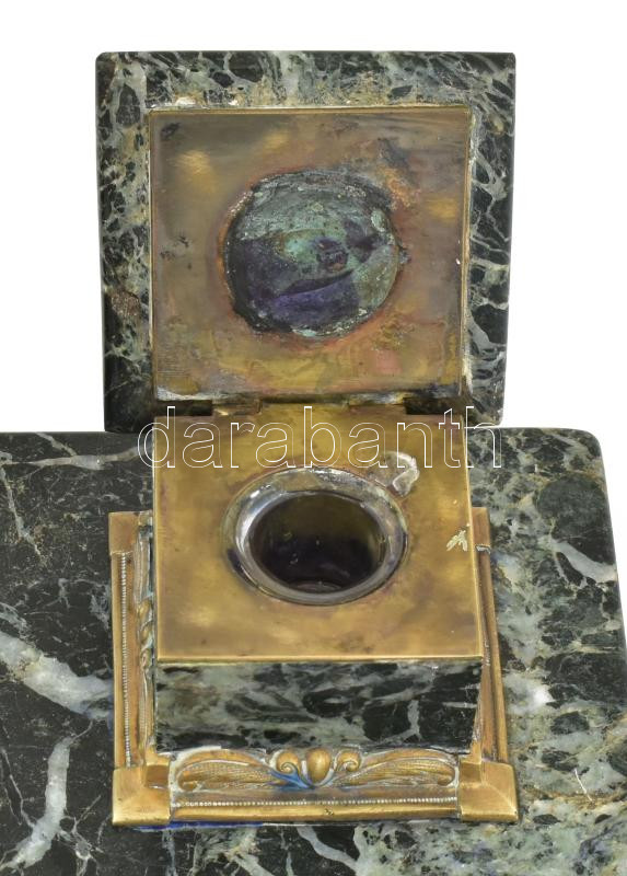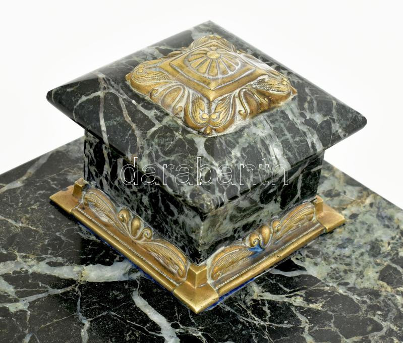 Antik márvány íróasztali tolltartó, tintatartó. Üvegbetét egyik kissé ...