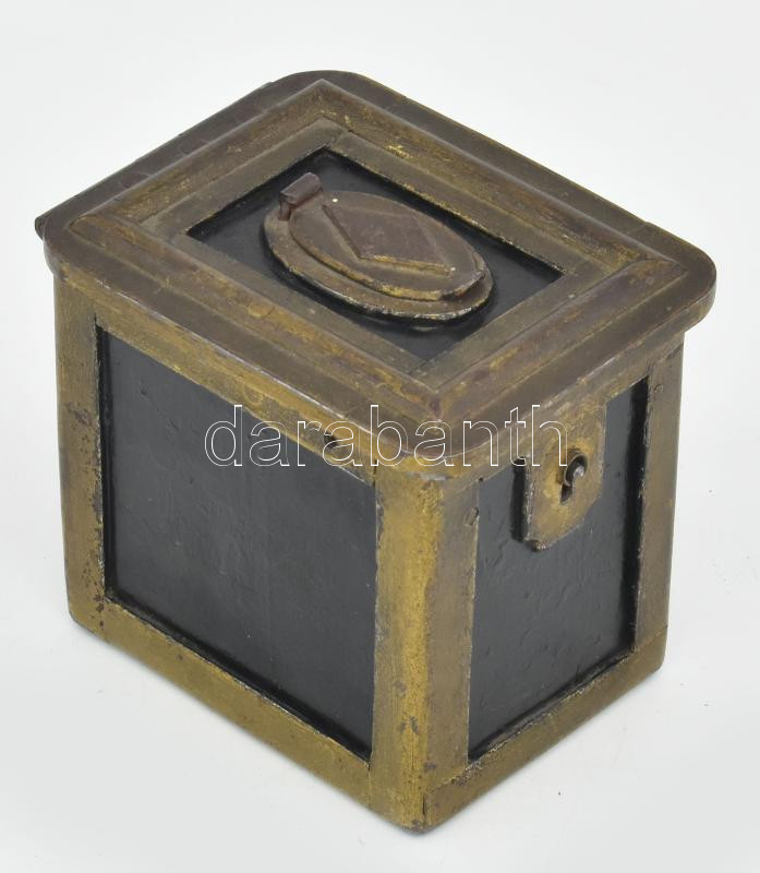 Antik vas persely kulcs nélkül 12x11x8 cm