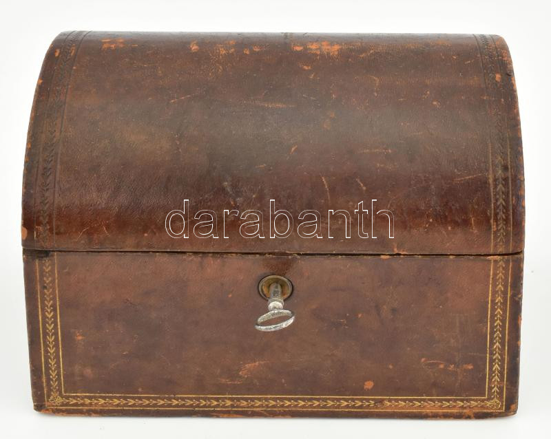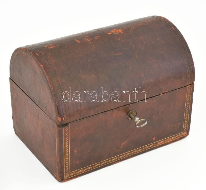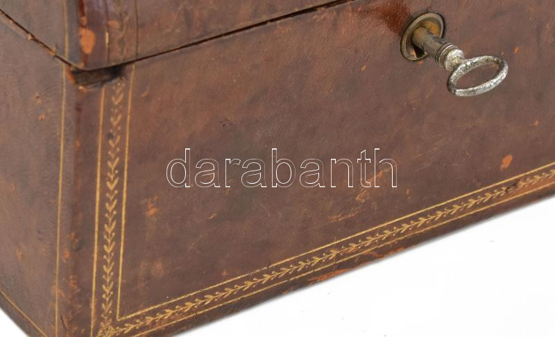 Bőr ládika. Firenze, XIX. sz. Aranyozott, kulcsos zárral (nem működik)...