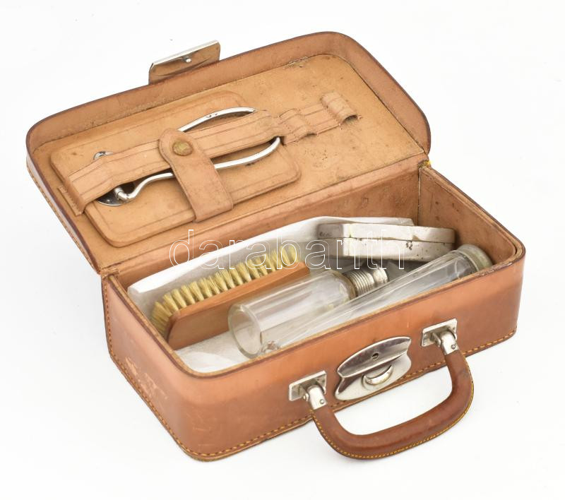Bőr pipere bőrönd tartozékokkal 12x24 cm