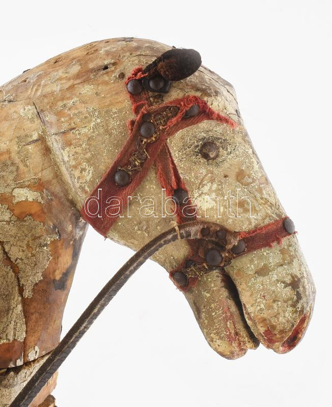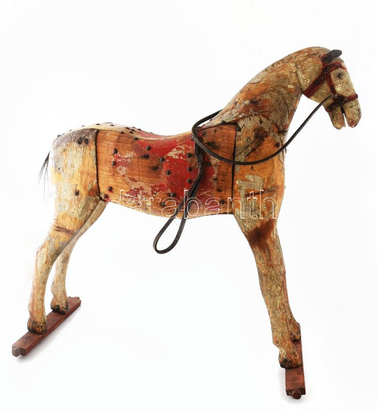 Fa hintaló / körhinta ló. cca 1900, korának megfelelő állapotban, hiányokkal, 72x78 cm