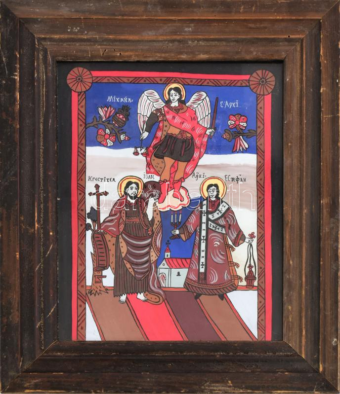 Ikon. Festett üveg, keretben, Erdély, cca 1900, 33x28 cm