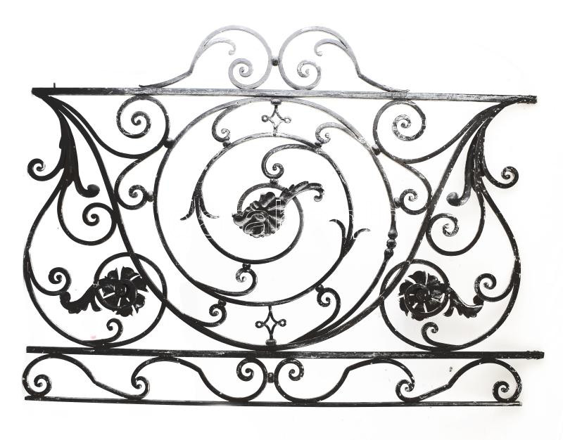 Jungfer Gyula (1841-1908) műlakatos, dÃszműkovács, vasárugyáros: antik korlát, rács, kovácsoltvas, szép állapotban, hegesztés nélkül, csak szegecselve, 117x88 cm Kizárólag személyes átvétel!!!