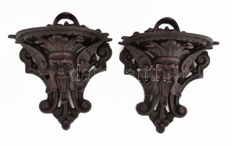 Ördögmaszkos öntöttvas fali posztamens pár, 23x19x15 cm