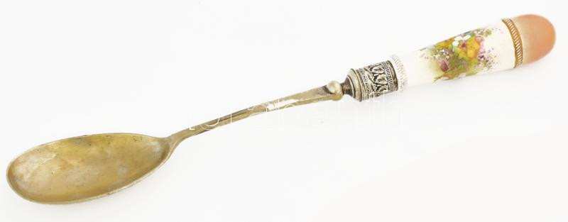Porcelán nyelű tálaló kanál. Kézzel festett, hibátlan 29 cm