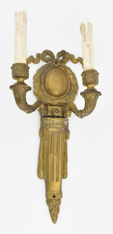 Szecessziós bronz kétágú falikar, kissé sérült gyertyatokokkal, m: 43 ...