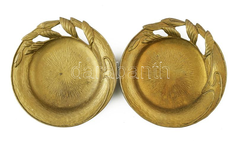 Szecessziós öntött bronz kínáló pár, áttört és domború mintákban tulipán díszítés, d: 24 cm
