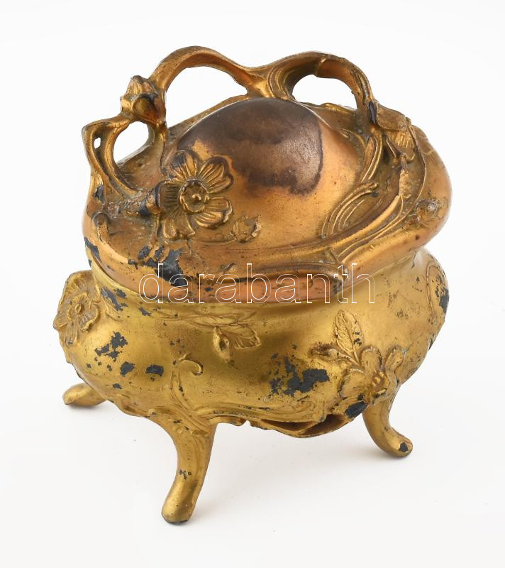 Szecessziós tüziaranyozott ón ékszerdoboz 11 cm