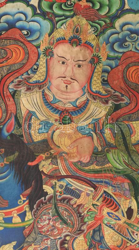 Thangka Geszer Kán ábrázolással Monggólia XX. sz közepe. Nyomat vászno...