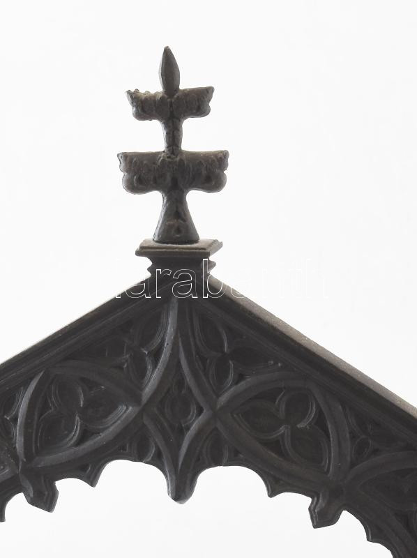 XIX. sz., Gótikus templomi stációkép tartó. Sasfigurával és alapos kidolgozású jelenetképekkel díszített, vas, kopással, m: 58 cm.
