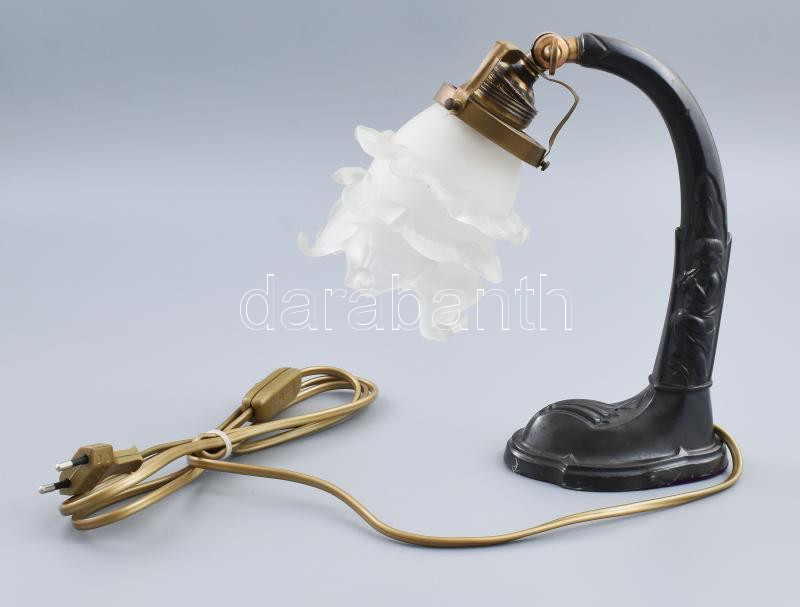 cca 1930 Antik éjjeli lámpa, puttós díszítéssel, savmaratott design üv...