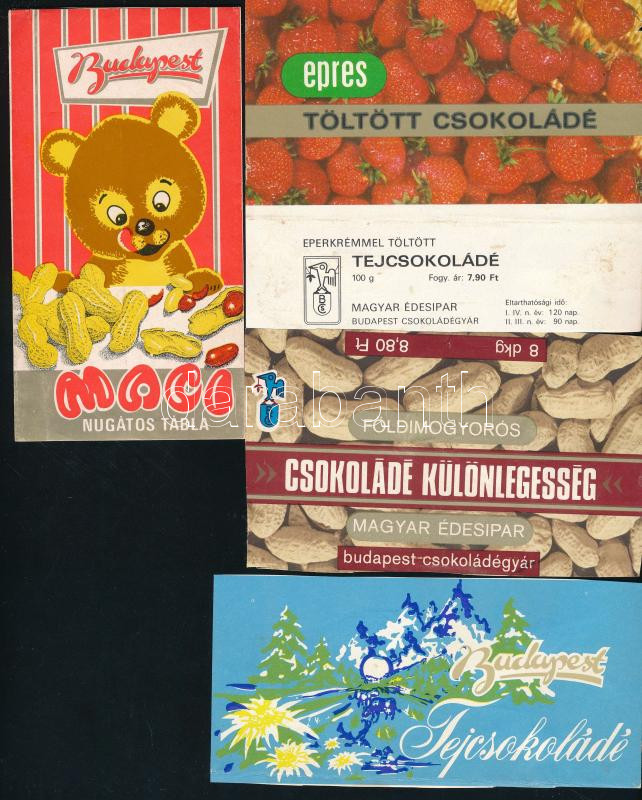 A Budapesti Csokoládégyár címkéi, 4 db különböző méretekben kivágások,...