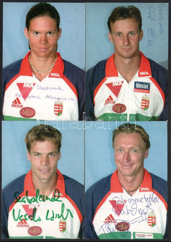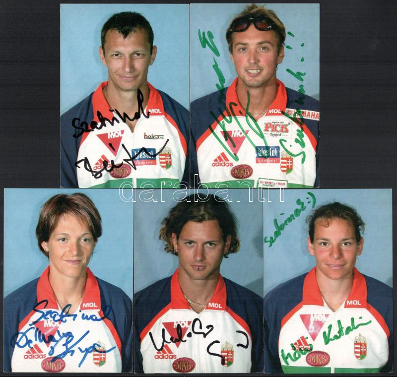 Evezősök, kajak-kenusok aláírása képeken, 9 db (Végh Attila, Keresztesi Alexandra, Dékány Kinga, stb. )