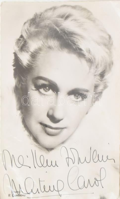Martine Carol (1920-1967) francia színésznő dedikált fotólapja / Autog...