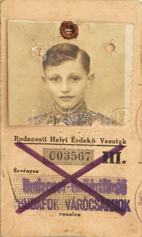 1938 A Budapesti Helyi Érdekű Vasutak fényképes tanoncbérlete a Budafo...