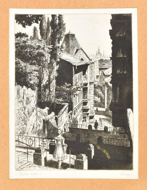 Tichy Kálmán (1888-1968): Budai utca. Rézkarc, papír. Jelzett. Paszpartuban, 32,5×24,5 cm