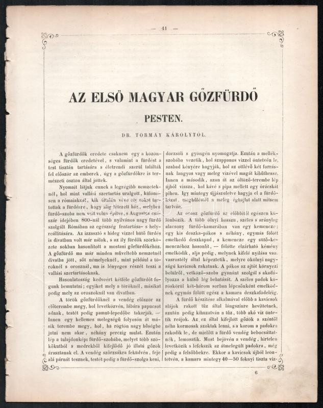 cca 1854 Tormay Károly: Az első magyar gőzfürdő Pesten. 41-49p. Fekete... https://www.darabanth.com/en/457-Online-auction/457.0/Art-and-other-collectibles/Budapest-150~2000361/cca-1854-Tormay-Karoly-Az-elso-magyar-gozfurdo-Pesten-41-49p-Fekete-feher-kepekkel-illuszt~II2852330