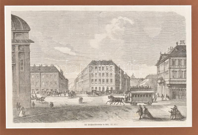 cca 1860 A Lóvasút Pesten - Die Strassen Eisenbahn in Pest fametszetű ...