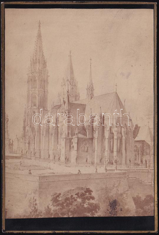 cca 1890 A Mátyás templom akvarell tervéről készült fotó 11x21 cm