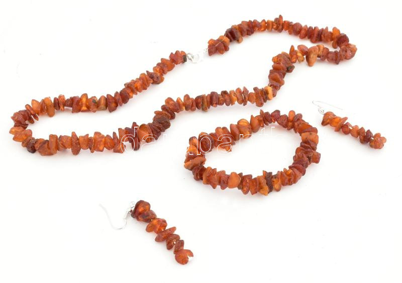 Borostyán ékszergarnitúra: nyaklánc, karkötő, fülbevalópár