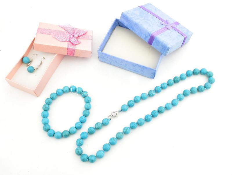 Türkiz ékszergarnitúra: nyaklánc, karkötő, fülbevalópár, hozzá két díszdobozzal