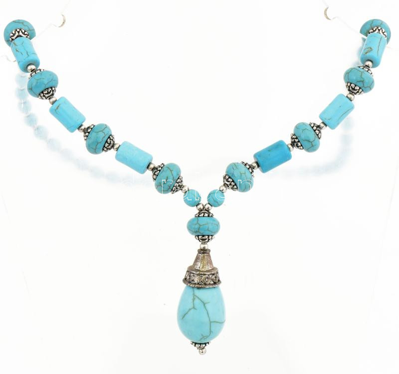 Türkiz nyaklánc csepp alakú függővel, h: 49 cm