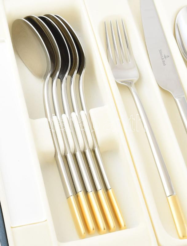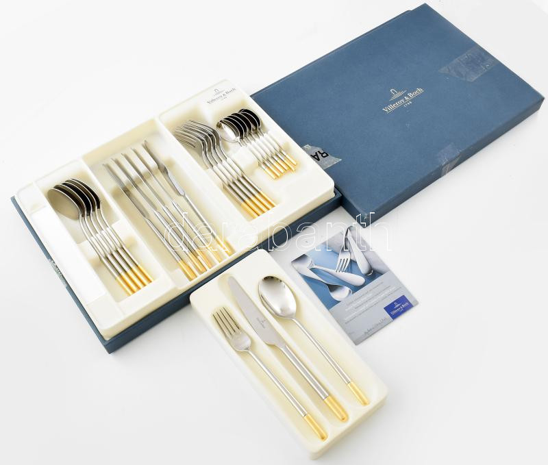 Description: Villeroy & Boch Ella 6 személyes exkluzív evőeszköz készlet, desszertvillákkal, összesen 30 darabos. Új állapotban, leírással, eredeti díszdobozban. (dobozon ragasztónyomok)