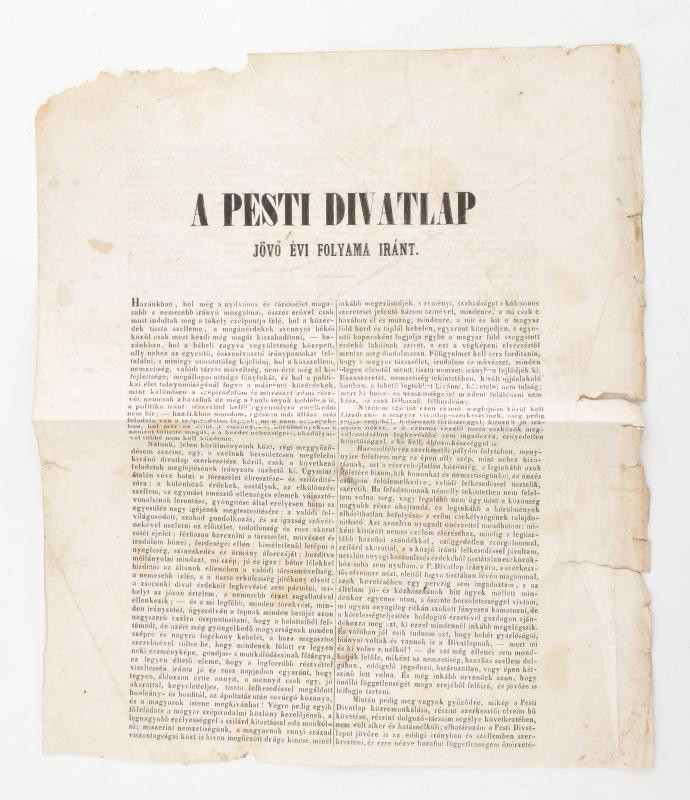 1846 Vahot Imre: A Pesti Divatlap ismertetője, szakadozott, foltos, 25x22 cm
