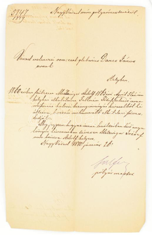 1880 Sal Ferenc (1835-1909) nagyváradi polgármester levele várad-velen... https://www.darabanth.com/en/457-Online-auction/457.0/Art-and-other-collectibles/Documents~500025/1880-Sal-Ferenc-1835-1909-nagyvaradi-polgarmester-levele-varad-velencei-Dancs-Janos-romai-kat~II2924545
