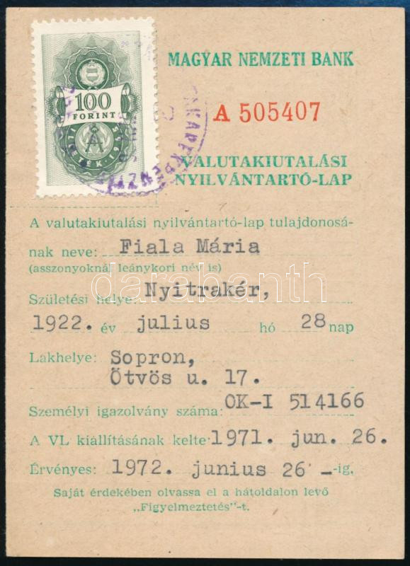 https://www.darabanth.com/en/457-Online-auction/457.0/Art-and-other-collectibles/Documents~500025/1972-Valutakiutalasi-nyilvantartolap-100Ft-okmanybelyeggel~II3032216