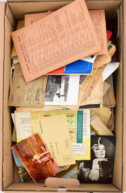 Nagy doboznyi vegyes papírrégiség, irat, fotó