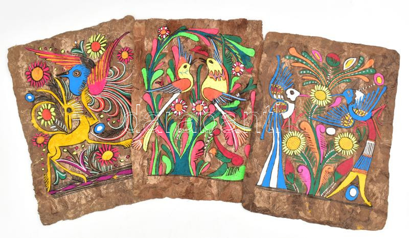 3 db parafa kéregre festett vidám festmény jelzés nélkül 24x30 cm