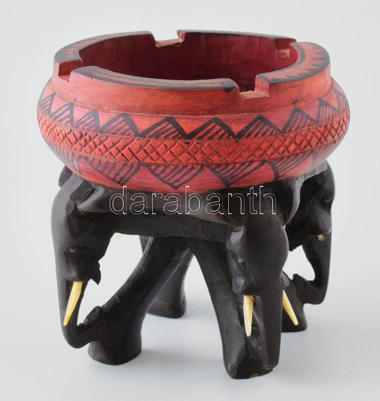 Afrikai elefántos faragott fa hamutartó csont agyarokkal, némelyik hiá...